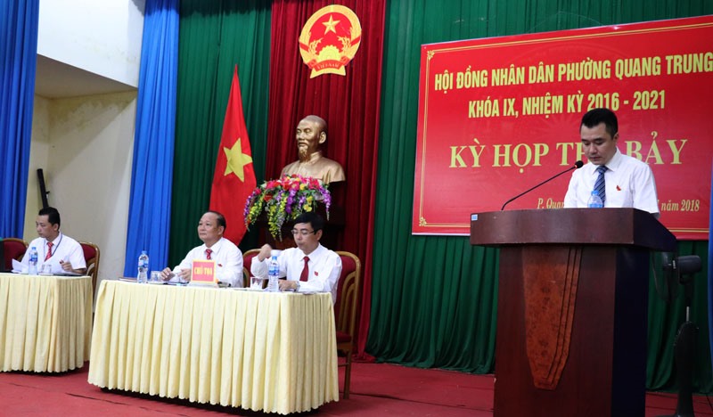 Ngày 26-7, HĐND phường Quang Trung khoá IX, nhiệm kỳ 2016-2021, tổ chức kỳ họp thứ VII nhằm đánh giá tình hình phát triển kinh tế - xã hội 6 tháng đầu năm, triển khai phương hướng, nhiệm vụ 6 tháng cuối năm 2018.