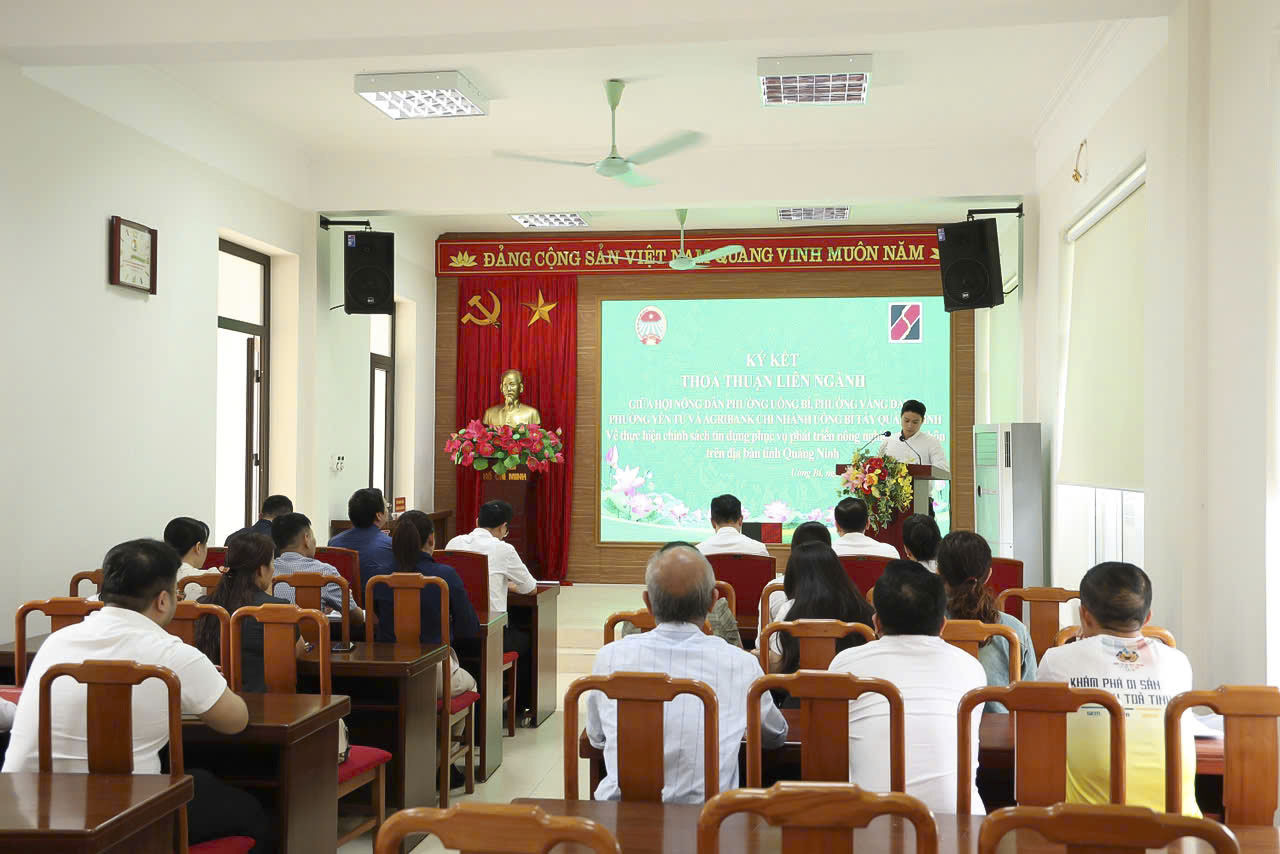 Ngày 24/3, tại phường Uông Bí, Agribank Chi nhánh Uông Bí Tây Quảng Ninh phối hợp với Hội Nông dân các phường Uông Bí, Vàng Danh, Yên Tử phối hợp tổ chức ký kết thoả thuận liên ngành về thực hiện chính sách tín dụng phục vụ phát triển nông nghiệp, nông thôn trên địa bàn tỉnh Quảng Ninh theo Nghị định số 55/2015/NĐ-CP của Chính phủ. Dự hội nghị có lãnh đạo Agribank Chi nhánh Uông Bí Tây Quảng Ninh; đại diện Hội Nông dân 3 phường cùng đông đảo hội viên nông dân trên địa bàn.