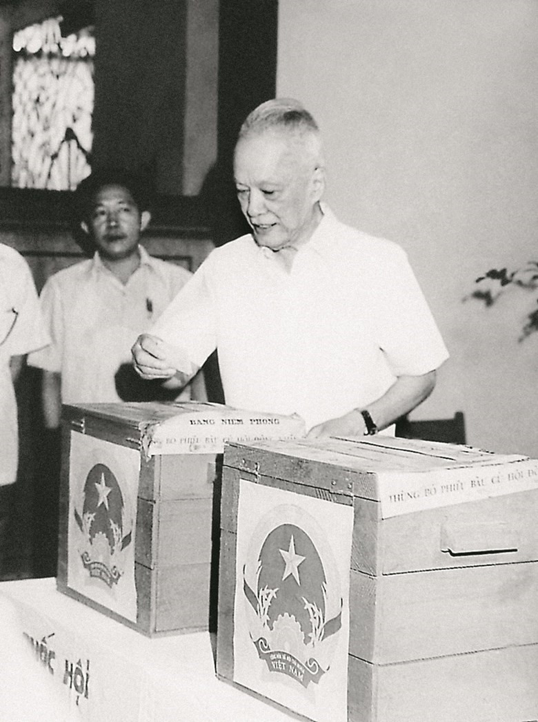 Chủ tịch Quốc hội Nguyễn Hữu Thọ bỏ phiếu bầu Quốc hội khóa VII tại quận 3, TP Hồ Chí Minh, tháng 4/1987