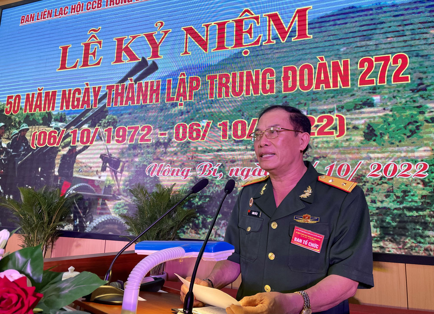 Tại lễ kỷ niệm, đại biểu đã ôn lại lịch sử 50 năm thành lập Trung đoàn 272. Ngày 6/10/1972, tại nông trường Hữu nghị, thị xã Quảng La, huyện Hoành Bồ, tỉnh Quảng Ninh, Trung đoàn 272 phòng không của Quân khu Tả Ngạn được thành lập, gồm các tiểu đoàn như: Tiểu đoàn 241 pháo 37 ly, Tiểu đoàn 249 pháo 57 ly của tỉnh đội Quảng Ninh, Tiểu đoàn 237 ly của tỉnh đội Hải Hưng. Năm 1973,Quân khu Tả Ngạn và Quân khu Hữu Ngạn sáp nhập thành Quân khu 3, lúc này,Trung đoàn 272 được bổ sung Tiểu đoàn 14 anh hùng của Sư 350 chuyển về. Từ khi thành lập, Trung đoàn 272 đã lập nhiều chiến công, bắn rơi 176 máy bay Mỹ; Tiểu đoàn 14 được tuyên dương anh hùng năm 1973; Trung đoàn được Đảng và Nhà nước tặng thưởng 78 huy chương chiến công các loại.