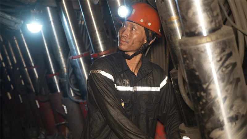 Công nhân Công ty Than Hạ Long điều khiển hệ thống giàn chống trong lò chợ.