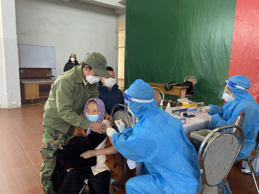 Nhân viên y tế TP Uông Bí tiêm vắc-xin phòng Covid-19 cho người dân.