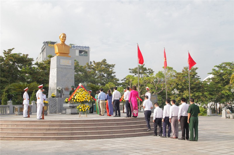 Đoàn đại biểu tỉnh đặt vòng hoa, dâng hương tại Tượng đài đồng chí Vũ Văn Hiếu, Bí thư Đặc Khu ủy đầu tiên Khu mỏ Quảng Ninh, ngày 27/7/2021.