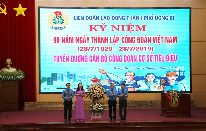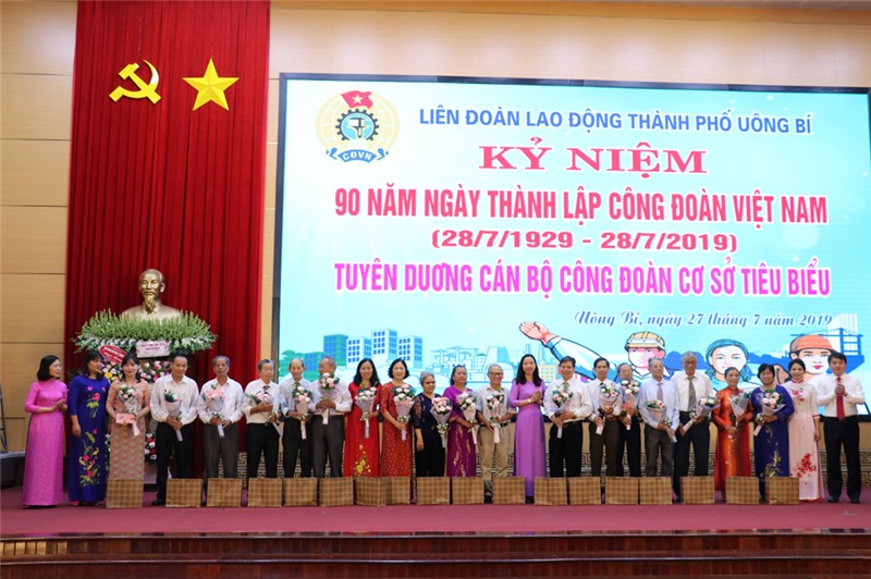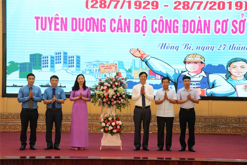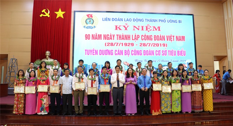 Tại lễ kỷ niệm, LĐLĐ thành phố đã biểu dương 6 Chủ tịch Công đoàn cơ sở tiêu biểu, xuất sắc, được LĐLĐ tỉnh tuyên dương, khen thưởng. Tuyên dương, khen thưởng 35 CB CĐ, CB nữ công tiêu biểu trong các CĐCS trực thuộc và công đoàn đơn vị phối hợp trên địa bàn thành phố. Đ/c Nguyễn Lan Anh, Chủ tịch LĐLĐ thành phố Uông Bí được UBND tỉnh Quảng Ninh tặng Bằng khen.