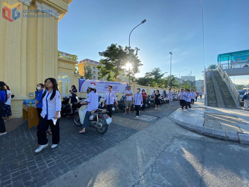 Các thí sinh đến Điểm thi Trường THPT Hòn Gai trong sáng sớm 26/6.