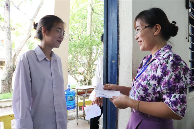 Cán bộ làm công tác coi thi vừa làm đúng chức trách, nhiệm vụ, vừa vui vẻ, niềm nở để tạo tâm lý thoải mái cho các thí sinh.