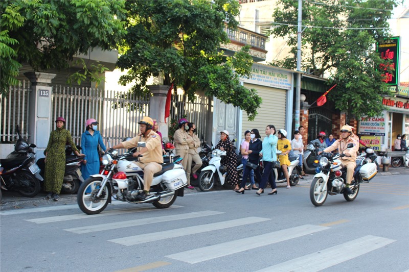 Lực lượng cảnh sát giao thông thường xuyên tuần tra đảm bảo ATGT tại các điểm thi.