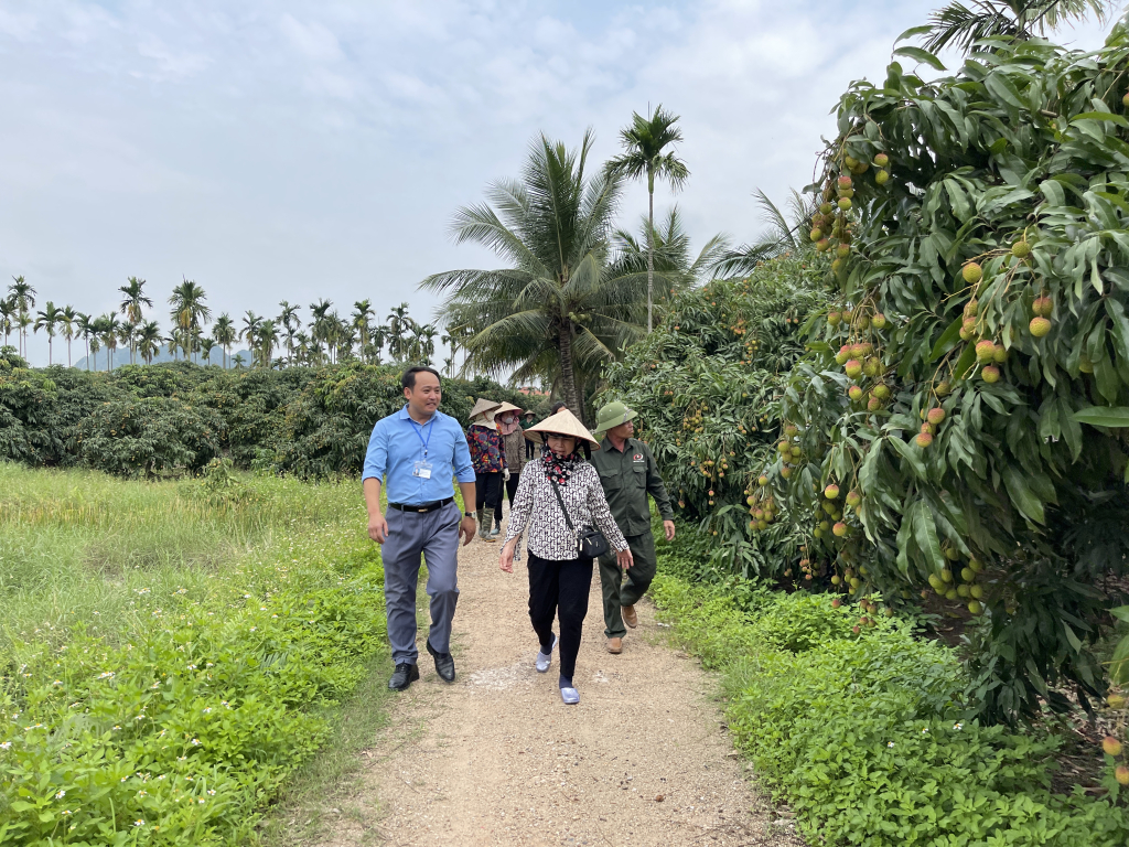 Hằng tháng, lãnh đạo Hội Nông dân TP Uông Bí đi kiểm tra chất lượng các vườn vải.