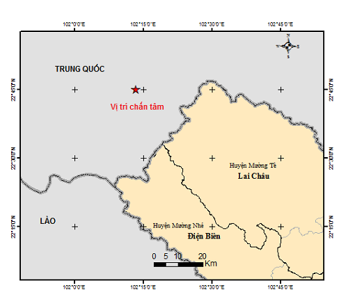 Trận động đất có độ lớn 3.2 vừa xảy ra ở khu vực biên giới Trung Quốc, giáp ranh với huyện Mường Tè (Lai Châu) gây rung lắc mạnh.