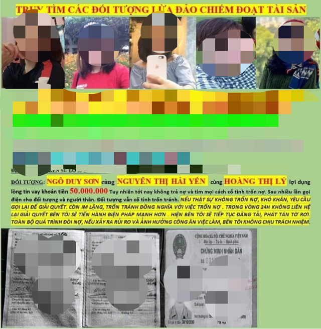 Poster đối tượng đòi nợ đưa lên mạng xã hội - Ảnh người dân cung cấp. |