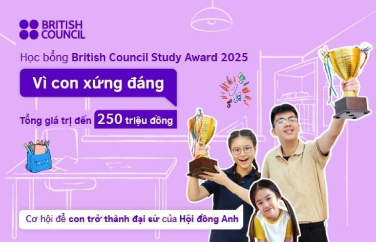 Phụ huynh và học sinh quan tâm học bổng British Council Study Award 2025 có thể tìm hiểu thông tin chi tiết và đăng ký tại: bit.ly/StudyAward2025.