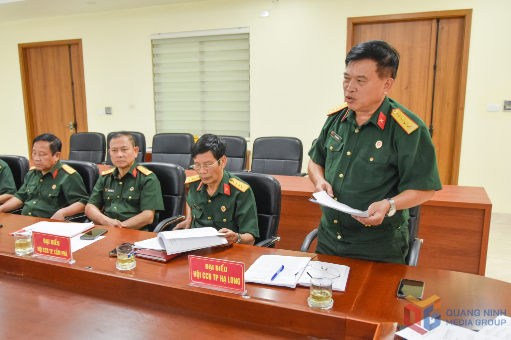 Hội viên Hội CCB TP Hạ Long đóng góp ý kiến tại hội nghị lấy ý kiến về dự thảo Nghị quyết sửa đổi, bổ sung một số điều của Hiến pháp năm 2013 do CCB tỉnh tổ chức. Ảnh: Hoàng Giang