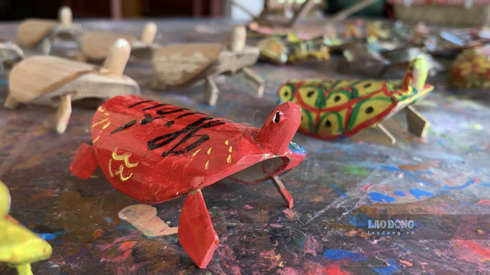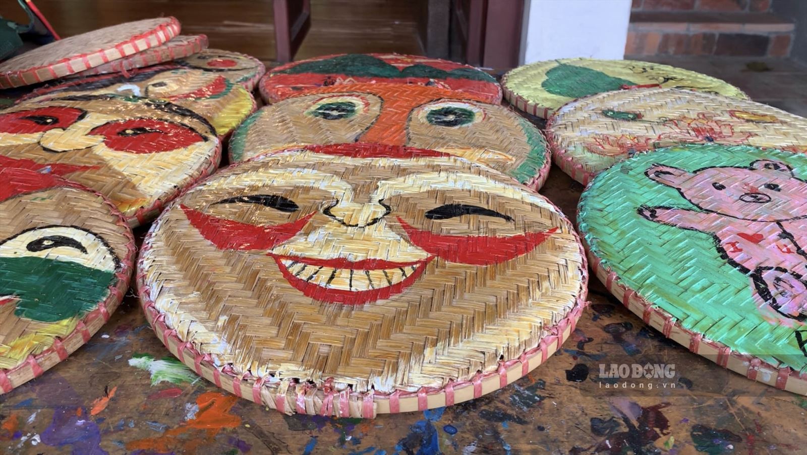 Khu vực trải nghiệm làm nghề thủ công truyền thống như nghề làm tranh gỗ dân gian Đông Hồ, nghề làm nón lá, chuồn chuồn tre, viết chữ thư pháp... Ảnh: Thiên Hà.