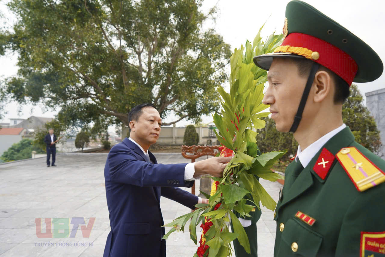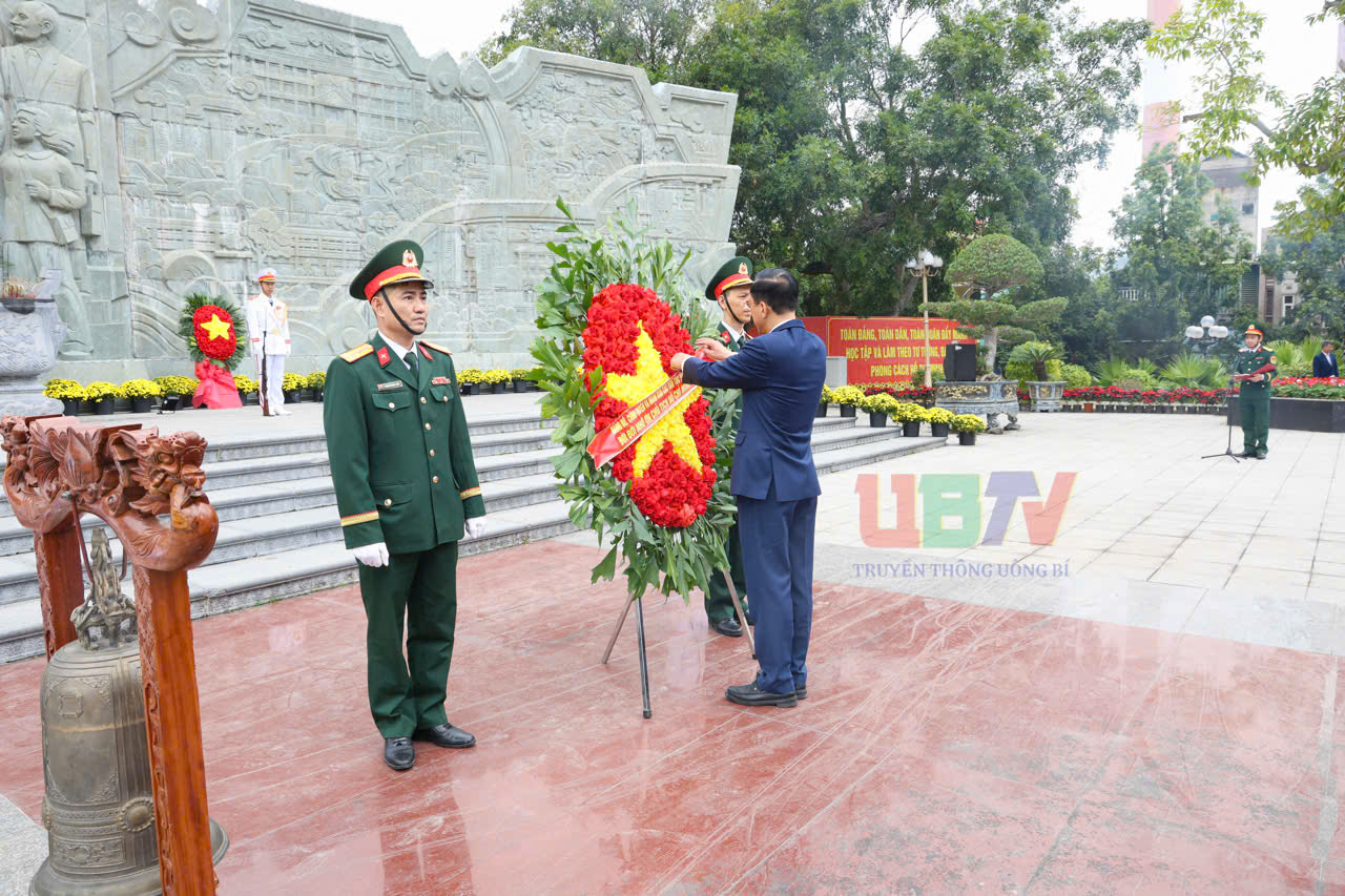 Nhân dịp Tết Nguyên đán Bính Ngọ 2026, sáng nay đoàn đại biểu Thành ủy, HĐND, UBND, MTTQ và các đoàn thể chính trị xã hội, các đơn vị lực lượng vũ trang phường Uông Bí do đồng chí Nguyễn Chiến Thắng, Bí thư Đảng ủy, Chủ tịch HĐND phường làm trưởng đoàn đã dâng hương, đặt vòng hoa, viếng anh linh các anh hùng liệt sỹ tại nghĩa trang Liệt sỹ và Di tích Lưu niệm sự kiện Bác Hồ về thăm Uông Bí.