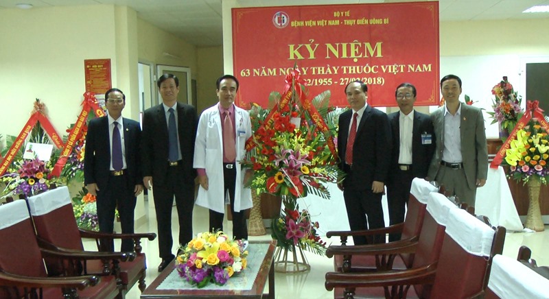 Nhân kỷ niệm 63 năm ngày thầy thuốc Việt Nam 27-2 (1955-2018), các đồng chí Trần Văn Lâm, Tỉnh ủy viên, Bí thư Thành ủy, Chủ tịch HĐND thành phố; Phạm Tuấn Đạt, Ủy viên BTV Thành ủy, Phó Chủ tịch UBND thành phố đã đến tặng hoa, chúc mừng tập thể lãnh đạo, y, bác sỹ Bệnh viện Việt Nam - Thụy Điển Uông Bí; Ban bảo vệ chăm sóc sức khỏe cán bộ tỉnh.