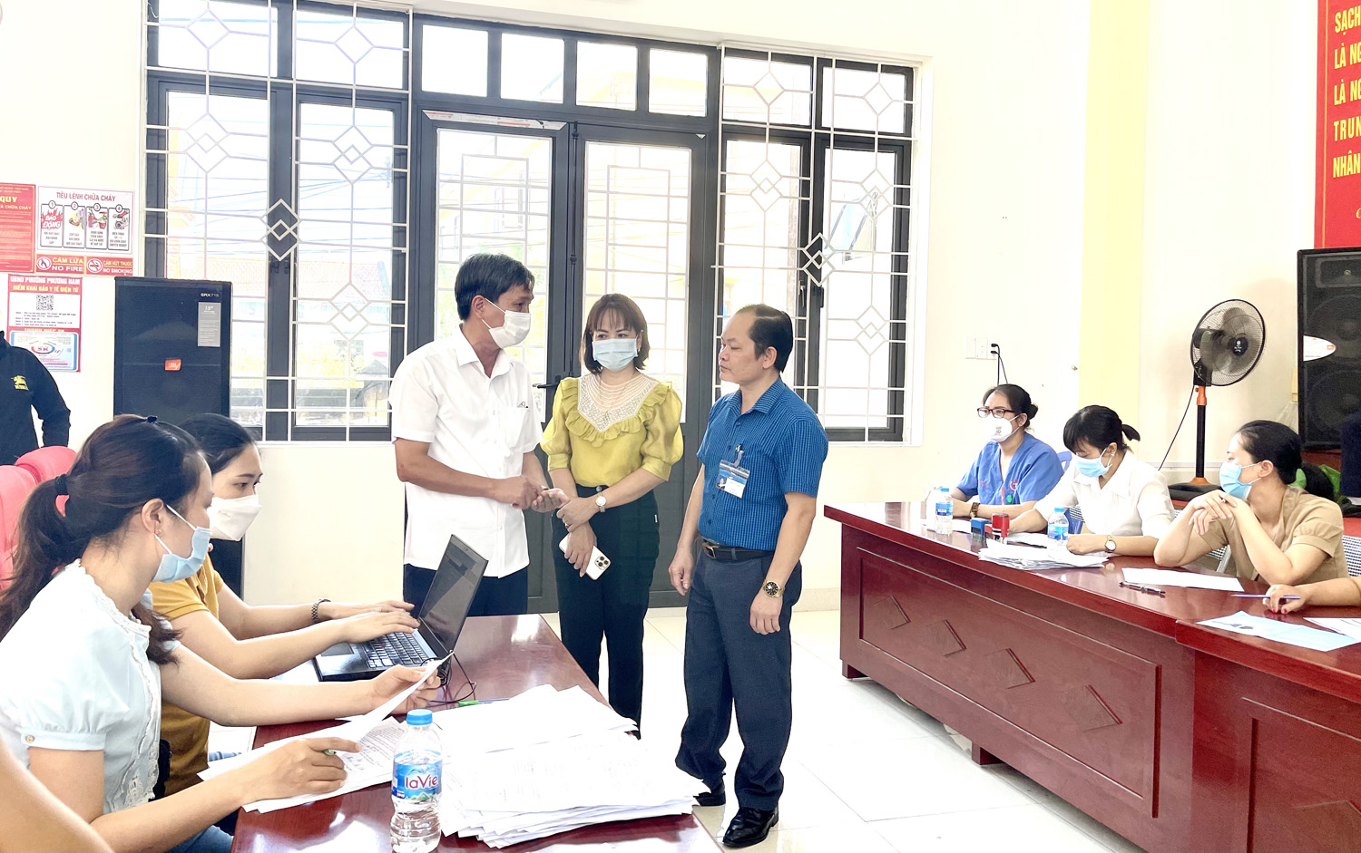 Lãnh đạo thành phố kiểm tra công tác tiêm chủng vắc xin phòng Covid-19 tại trụ sở UBND phường Phương Nam.