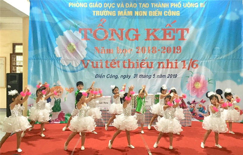 Tiết mục văn nghệ của các bé Trường Mầm non Điền Công mừng ngày Quốc tế thiếu nhi 1-6.