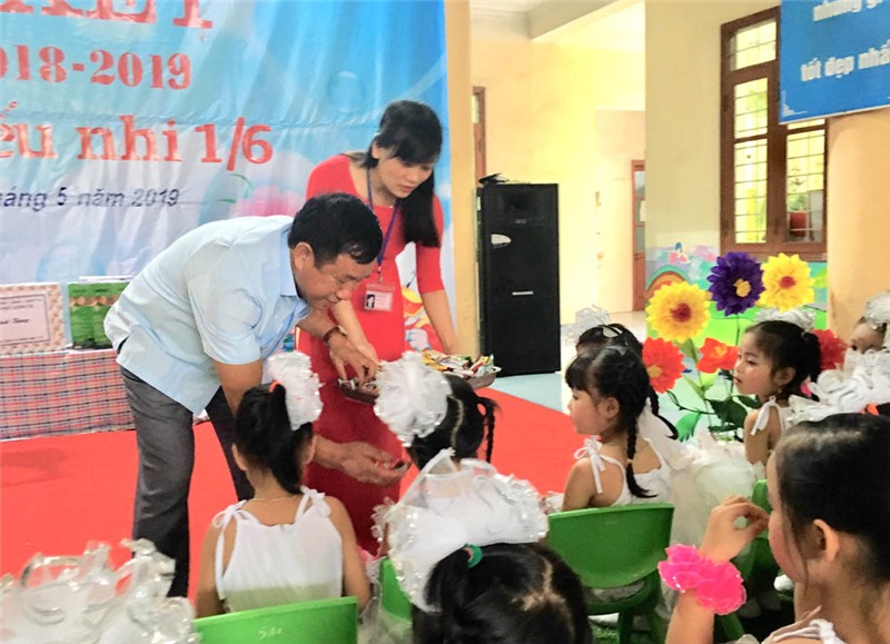 Đồng chí Đỗ Trường Sơn, Phó Chủ tịch HĐND thành phố tặng quà Tết thiếu nhi 1/6 tại Trường Mầm non Phương Nam.