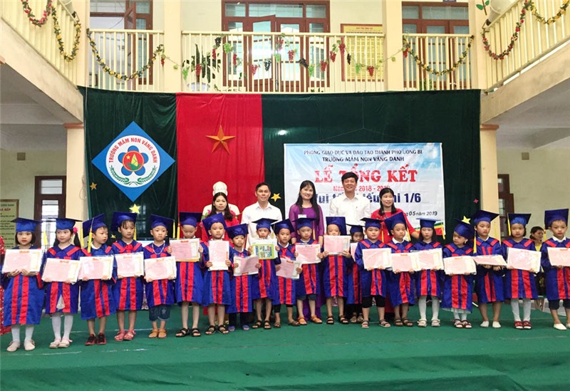 Thay mặt lãnh đạo thành phố, đồng chí Phó Chủ tịch UBND thành phố đã tặng quà, chúc các bé Trường Mầm non Vàng Danh luôn chăm ngoan, mạnh khỏe, đón ngày Quốc tế thiếu nhi và một mùa hè thật vui, ý nghĩa. Đồng chí mong muốn tập thể cán bộ, giáo viên nhà trường tiếp tục phát huy kết quả đã đạt được, thực hiện tốt hơn nữa công tác chăm sóc, giáo dục trẻ em; xây dựng môi trường sư phạm thân thiện, tạo mọi điều kiện học tập tốt nhất để các cháu thiếu nhi phát triển toàn diện.