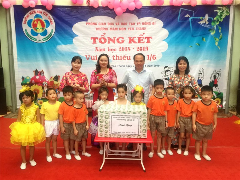 Đồng chí Bí thư Thành ủy đã tặng quà chúc mừng các cháu thiếu nhi, chúc các cháu vui khỏe, chăm ngoan, nghe lời ông bà, cha mẹ, cô giáo. Đồng thời mong muốn trong những năm học tiếp theo, tập thể giáo viên Trường Mầm non Yên Thanh tiếp tục phát huy truyền thống và kết quả đã đạt được, thực hiện tốt hơn nữa công tác chăm sóc, giáo dục trẻ.