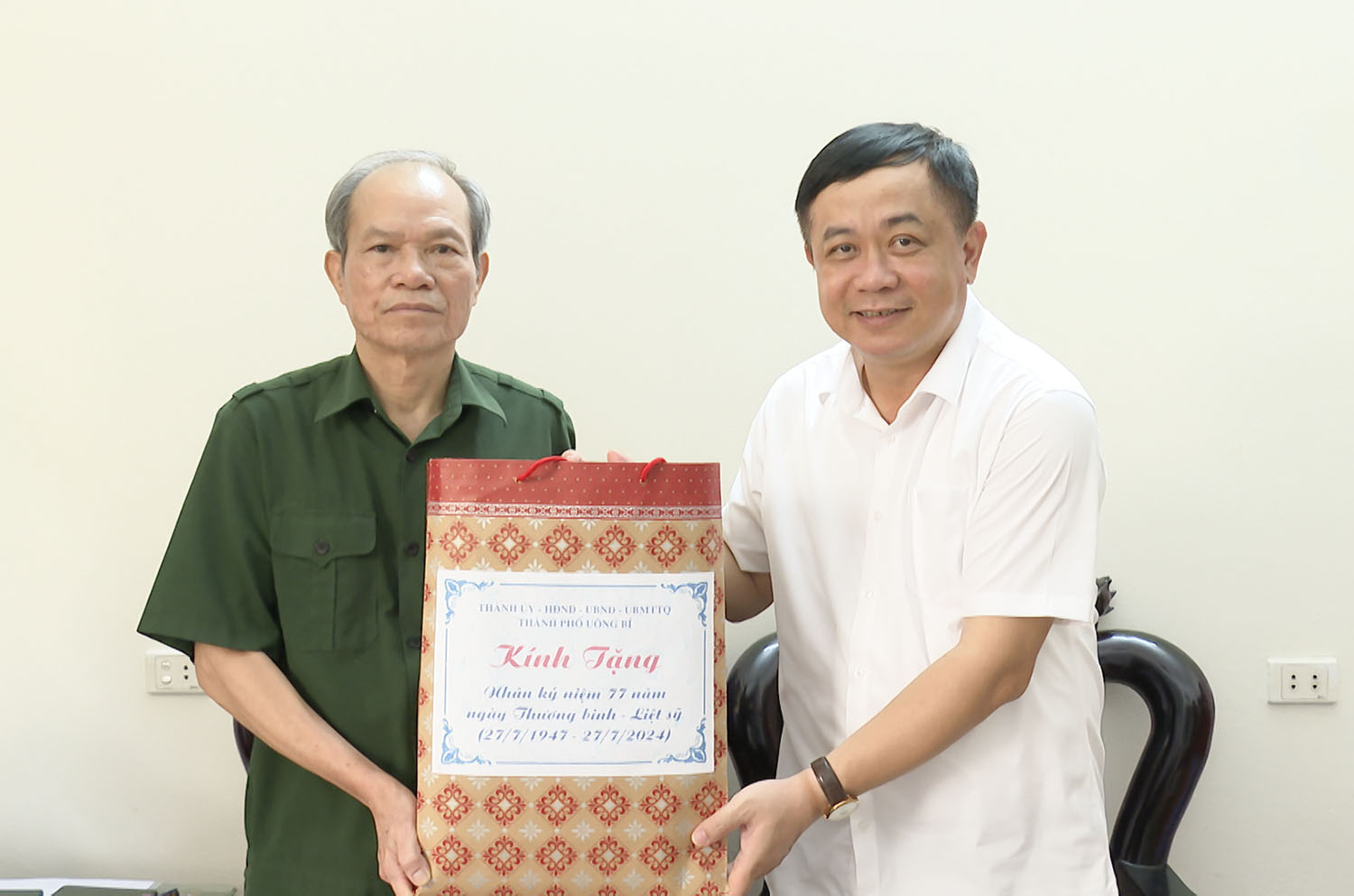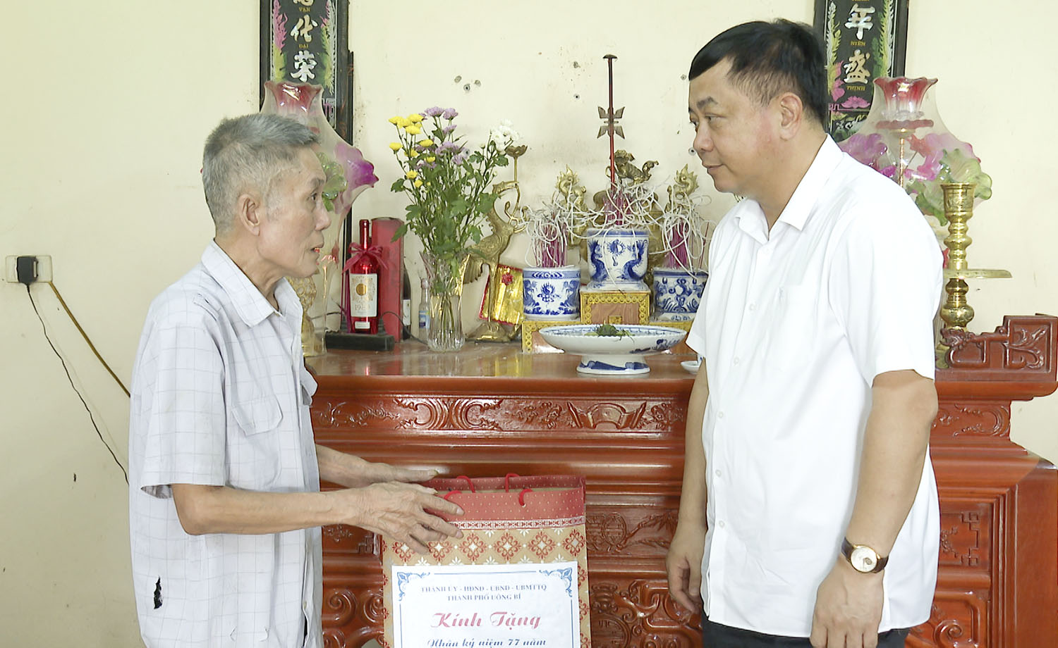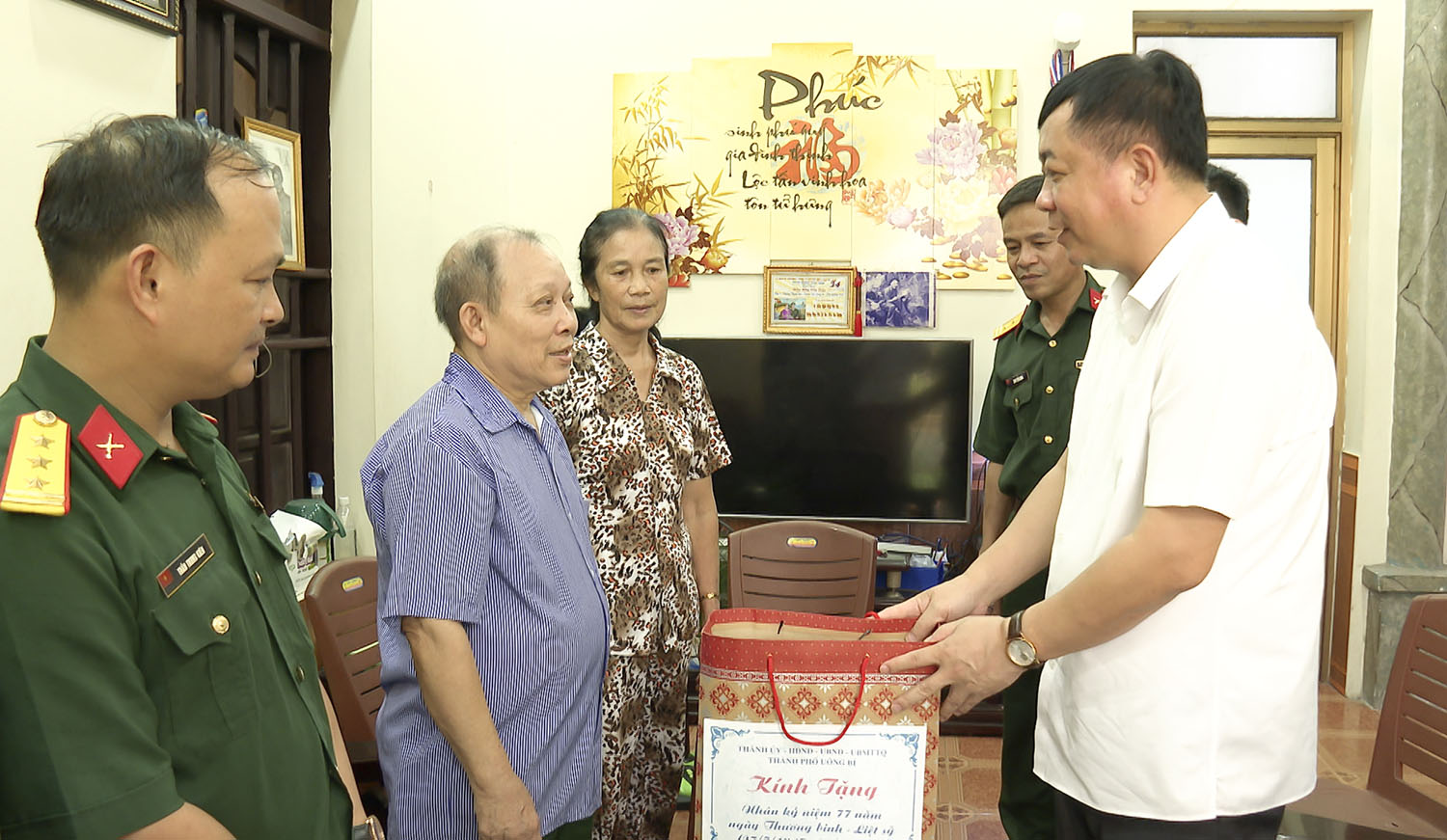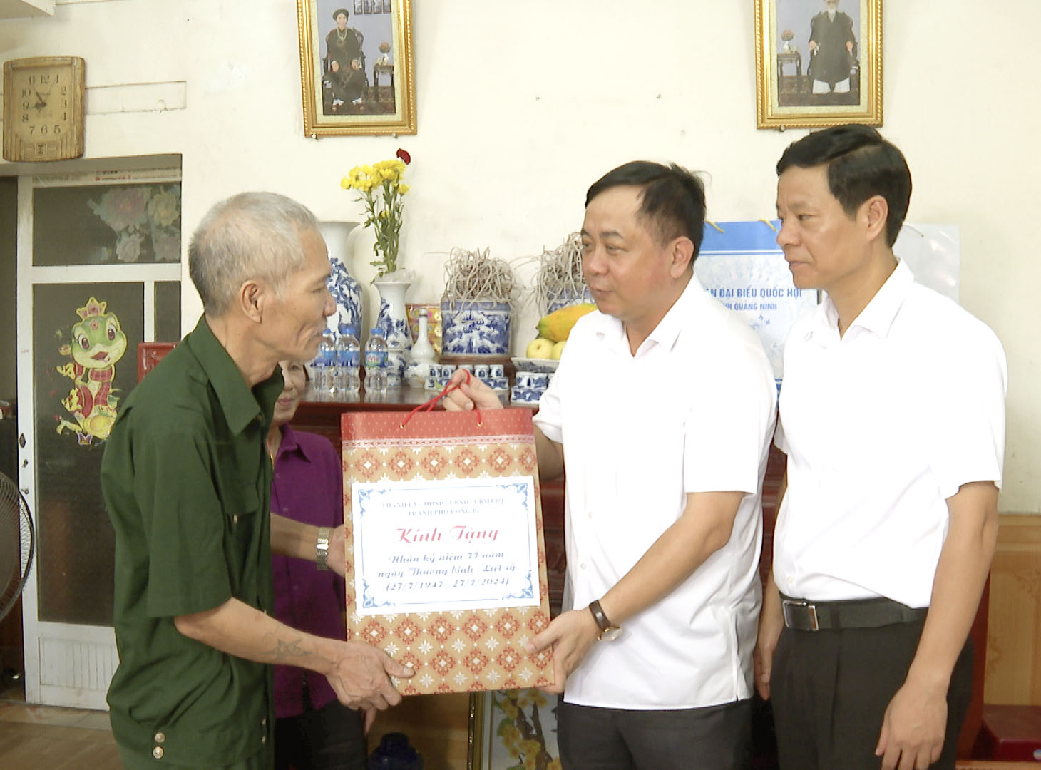 Nhân kỷ niệm 77 năm Ngày Thương binh liệt sỹ, sáng 22/7, các đồng chí lãnh đạo thành phố: Mai Vũ Tuấn, Uỷ viên BCH Đảng bộ tỉnh, Bí thư Thành uỷ; Phạm Tuấn Đạt, Phó Bí thư thành uỷ, Chủ tịch UBND thành phố đã tới thăm, tặng quà tặng quà mẹ Việt Nam anh hùng, các thương, bệnh binh, người có công với cách mạng trên địa bàn thành phố.