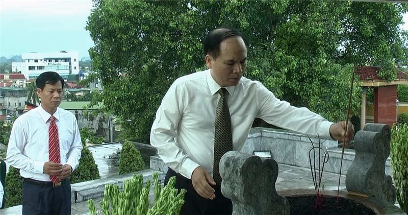 Đồng chí Trần Văn Lâm, Tỉnh ủy viên, Bí thư Thành ủy, Chủ tịch HĐND thành phố thắp hương tại Nghĩa trang liệt sỹ thành phố.