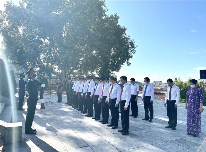 Đoàn đại biểu Thành ủy-HĐND-UBND-Ủy ban MTTQ, các đoàn thể và lực lượng vũ trang thành phố mặc niệm tưởng nhớ các Anh hùng liệt sĩ.