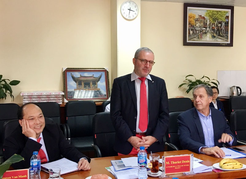 Thị trưởng thành phố Nevers cùng đoàn chuyên gia y tế Cộng hòa Pháp thăm trụ sở làm việc của thành phố Uông Bí.