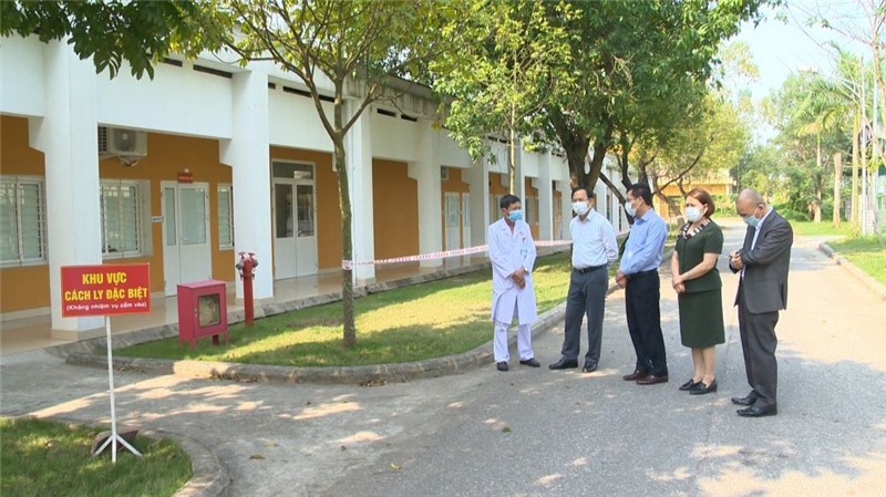 Đồng chí Đặng Huy Hậu, Phó Chủ tịch Thường trực UBND tỉnh kiểm tra cơ sở cách ly tại Bệnh viện Việt Nam - Thụy Điển.
