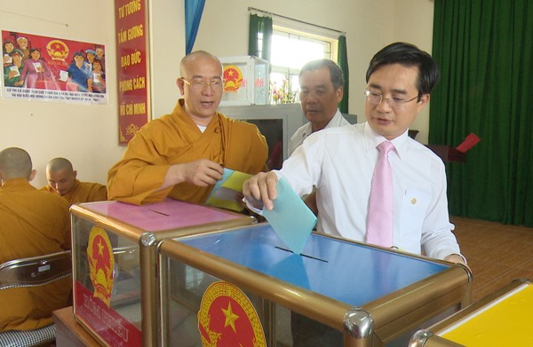 * Đúng 7 giờ ngày 22-5, tại Khu vực bỏ phiếu số 1, khu Tân Lập, phường Phương Đông, đồng chí Trần Văn Lâm, Tỉnh ủy viên, Bí thư Thành ủy Uông Bí dự lễ khai mạc và tham gia bỏ phiếu cùng các cử tri trên địa bàn.