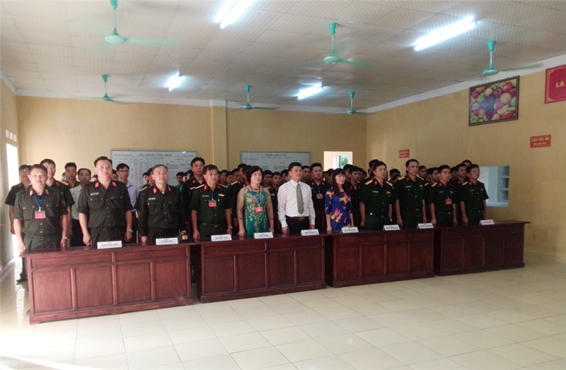 Đồng chí Nguyễn Thanh Bình, Ủy viên BTV, Chỉ huy trưởng Ban Chỉ huy quân sự thành phố dự khai mạc và bầu cử tại thôn Khe Sú 1, xã Thượng Yên Công.
