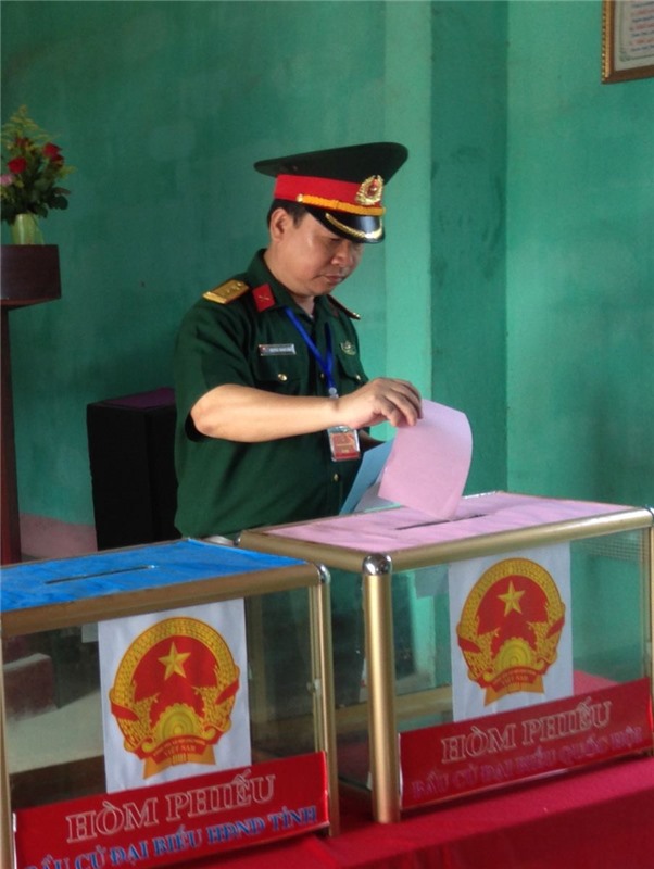 Trong không khí trang nghiêm long trọng, sau lễ khai mạc ngắn gọn, 846 cử tri thuộc LLVT đóng quân trên điạ bàn phường Nam Khê, TP Uông Bí đã tiến hành bỏ phiếu chọn ra những người có đức, có tài tham gia các cơ quan dân cử.
