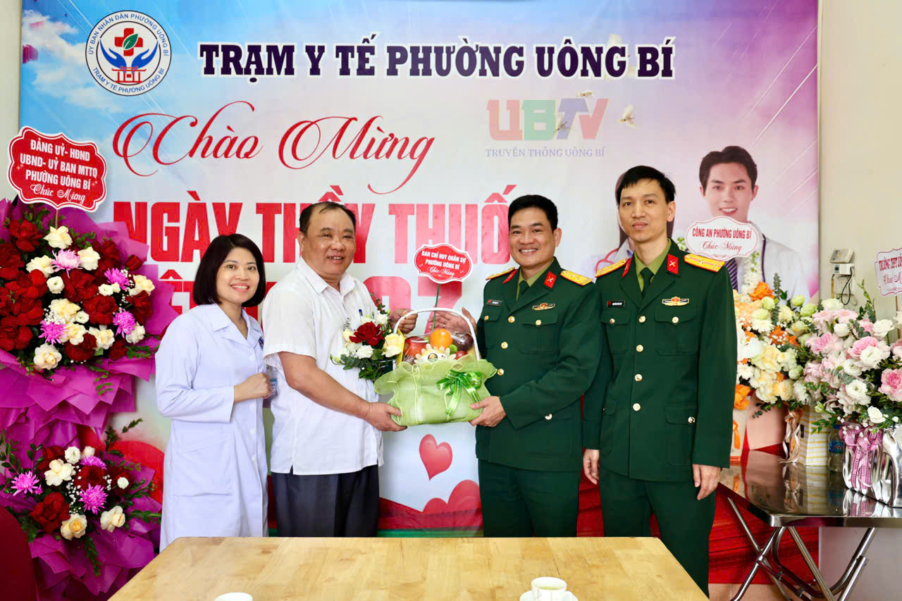 Ban CHQS phường chúc mừng cán bộ, y, bác sỹ Trạm y tế phường.