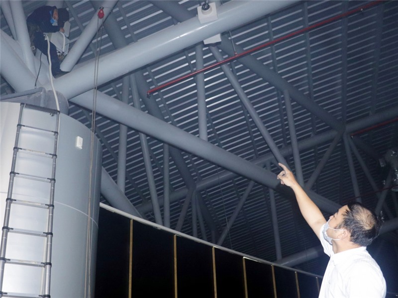 Cán bộ kỹ thuật VNPT lắp đặt thiết bị nhằm đảm bảo thông tin liên lạc tại sự kiện SEA Games 31 tại Quảng Ninh.