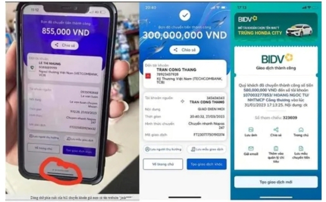 Hình ảnh 'giao dịch thành công' cũng bị làm giả