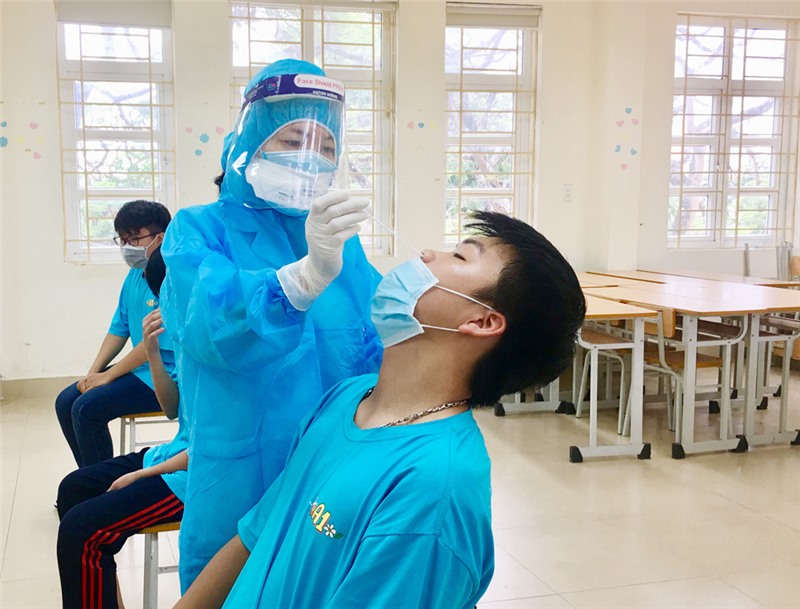 Lấy mẫu xét nghiệm Covid-19 cho cán bộ, giáo viên, nhân viên, lực lượng an ninh, thí sinh tham gia Kỳ thi tuyển sinh lớp 10