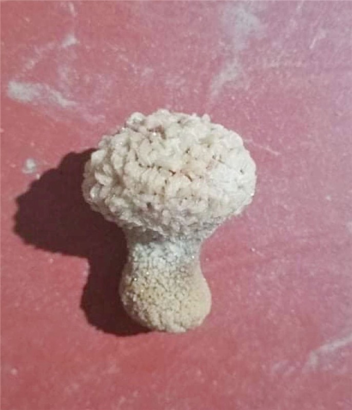 Viên sỏi hình nấm được lấy ra từ bàng quang của người bệnh. Ảnh do Bệnh viện cung cấp.