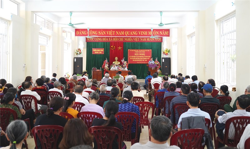 Sáng 1/4, tại khu 5B, phường Quang Trung đã tổ chức hội nghị lấy ý kiến nhận xét và tín nhiệm của cử tri nơi cư trú đối với người ứng cử, đại biểu HĐND các cấp, nhiệm kỳ 2021-2026.