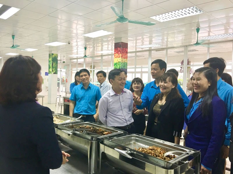 Thành viên BTV LĐLĐ khoá XVII tham quan khu vực nhà ăn của công nhân, khu vực cửa lò cánh gà, Nhà truyền thống Công ty CP Than Vàng Danh.