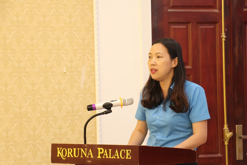 Đồng chí Nguyễn Lan Anh, Chủ tịch LĐLĐ thành phố Uông Bí phát biểu tại buổi lễ.