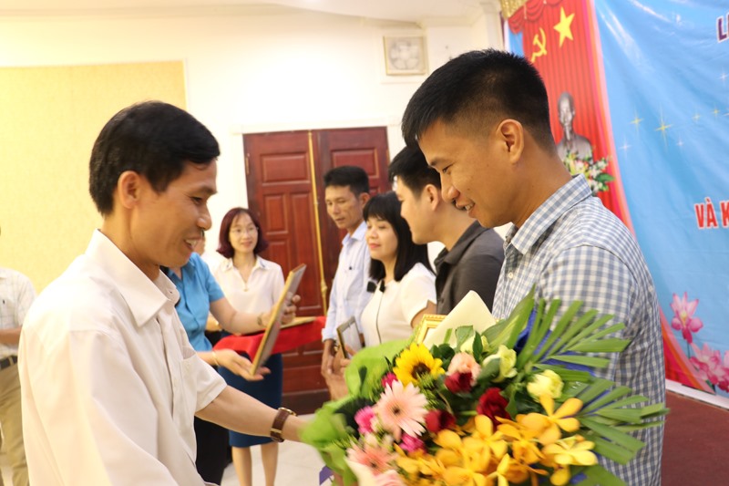 Lãnh đạo LĐLĐ tỉnh Quảng Ninh tặng hoa chúc mừng các CĐCS mới.