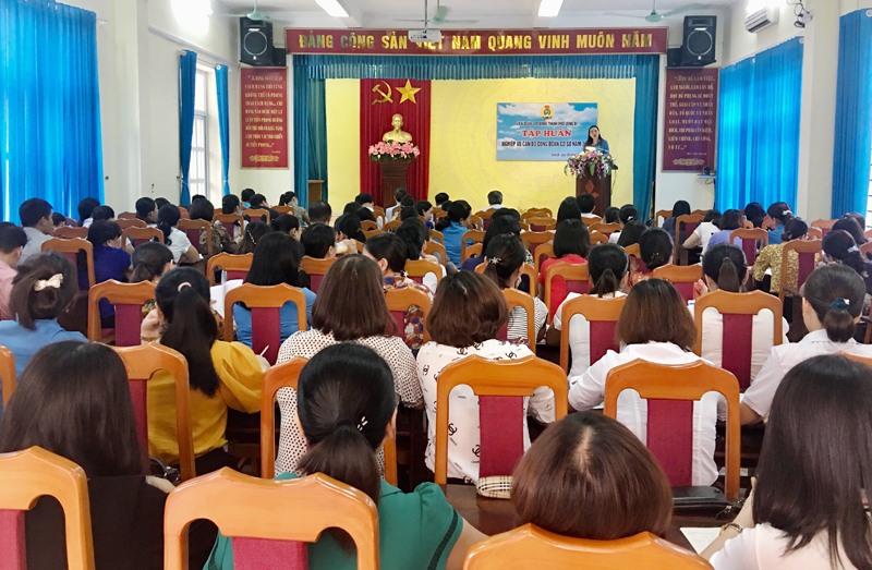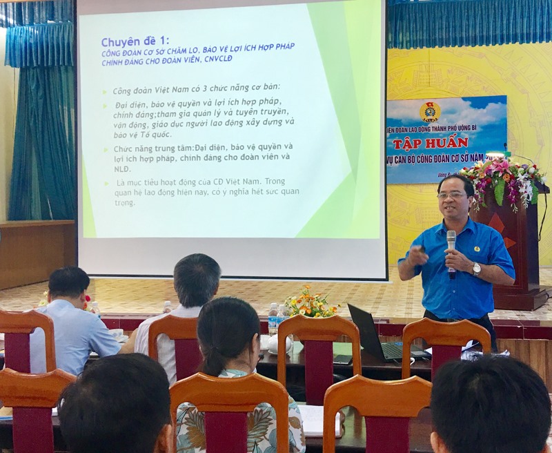 Báo cáo viên LĐLĐ tỉnh trình bày nội dung tập huấn.