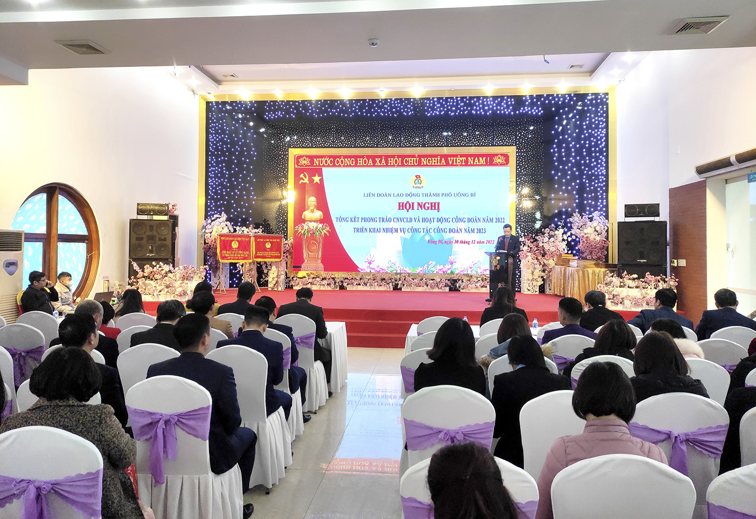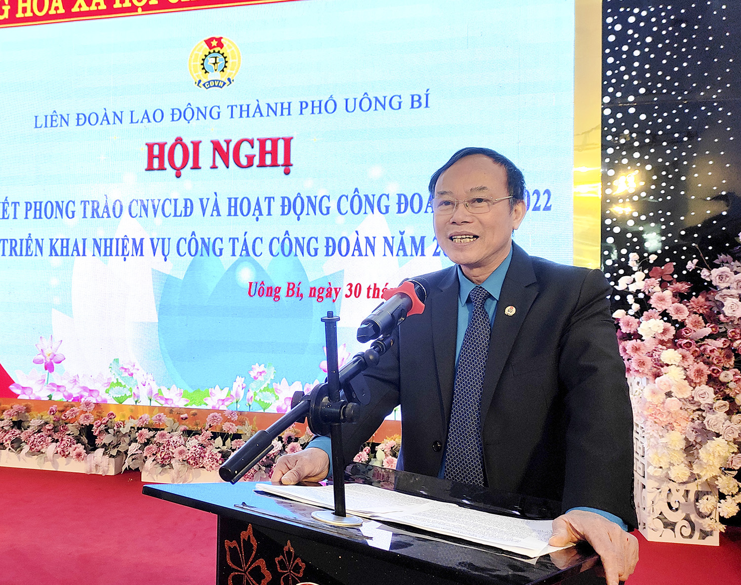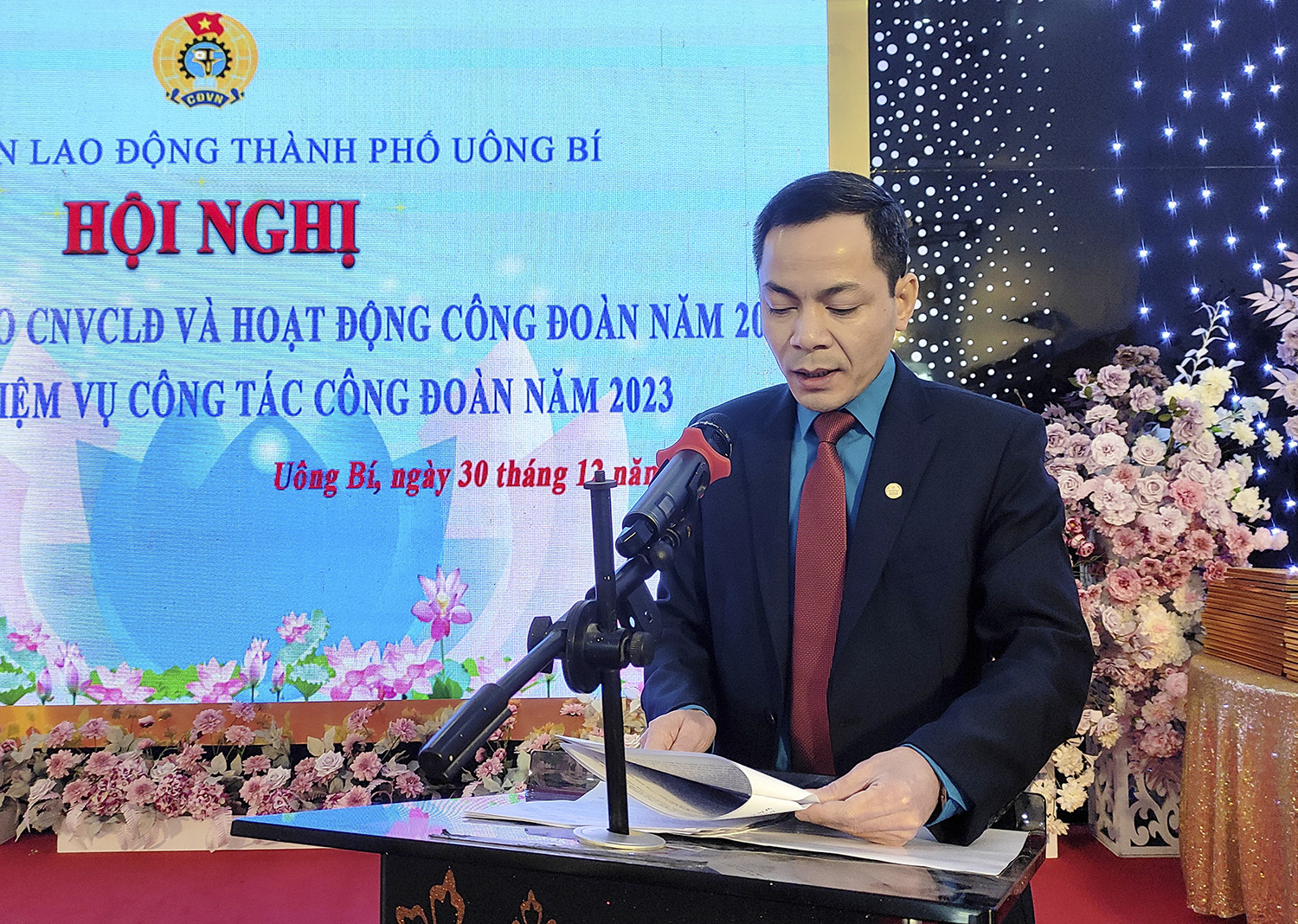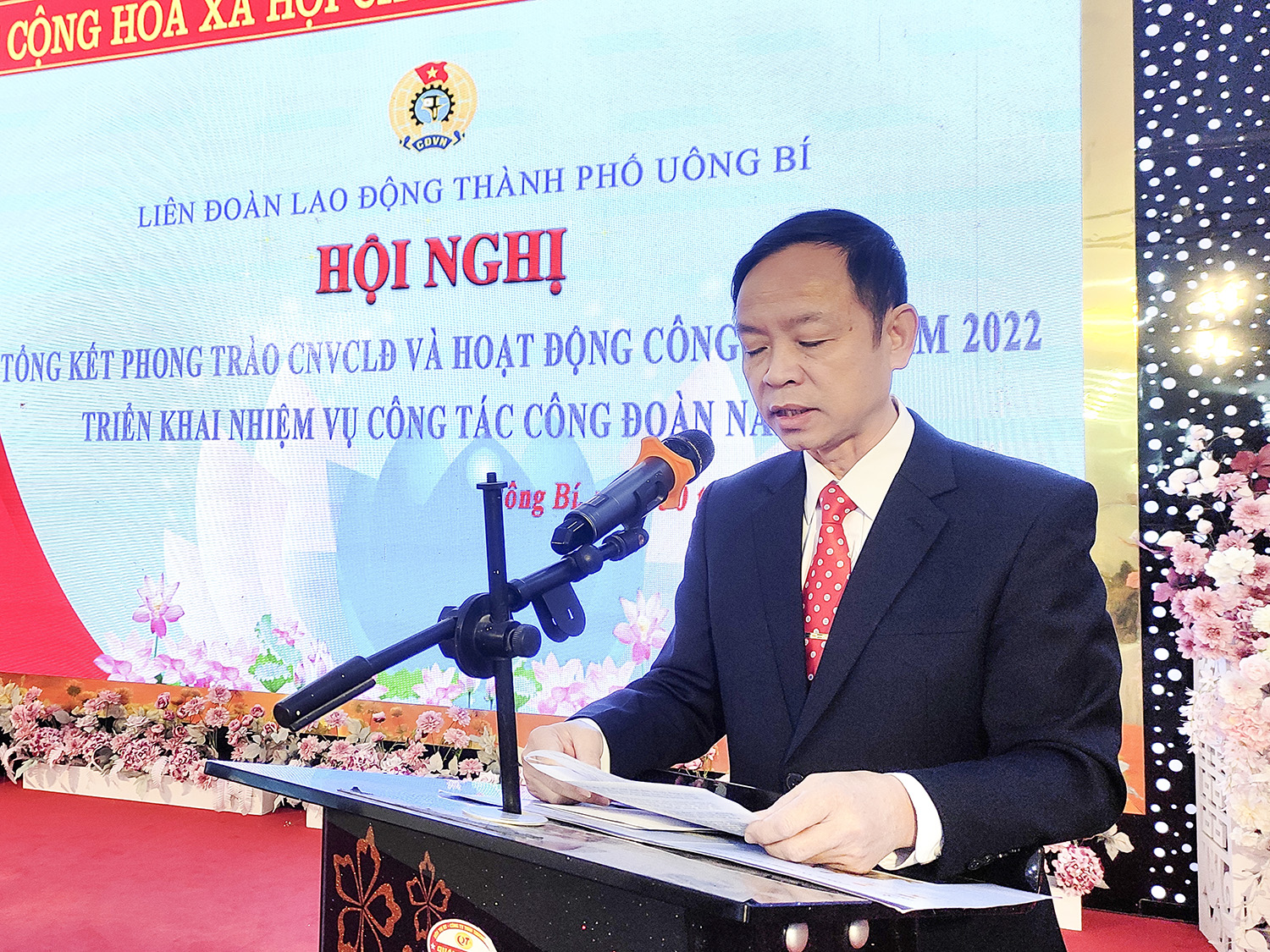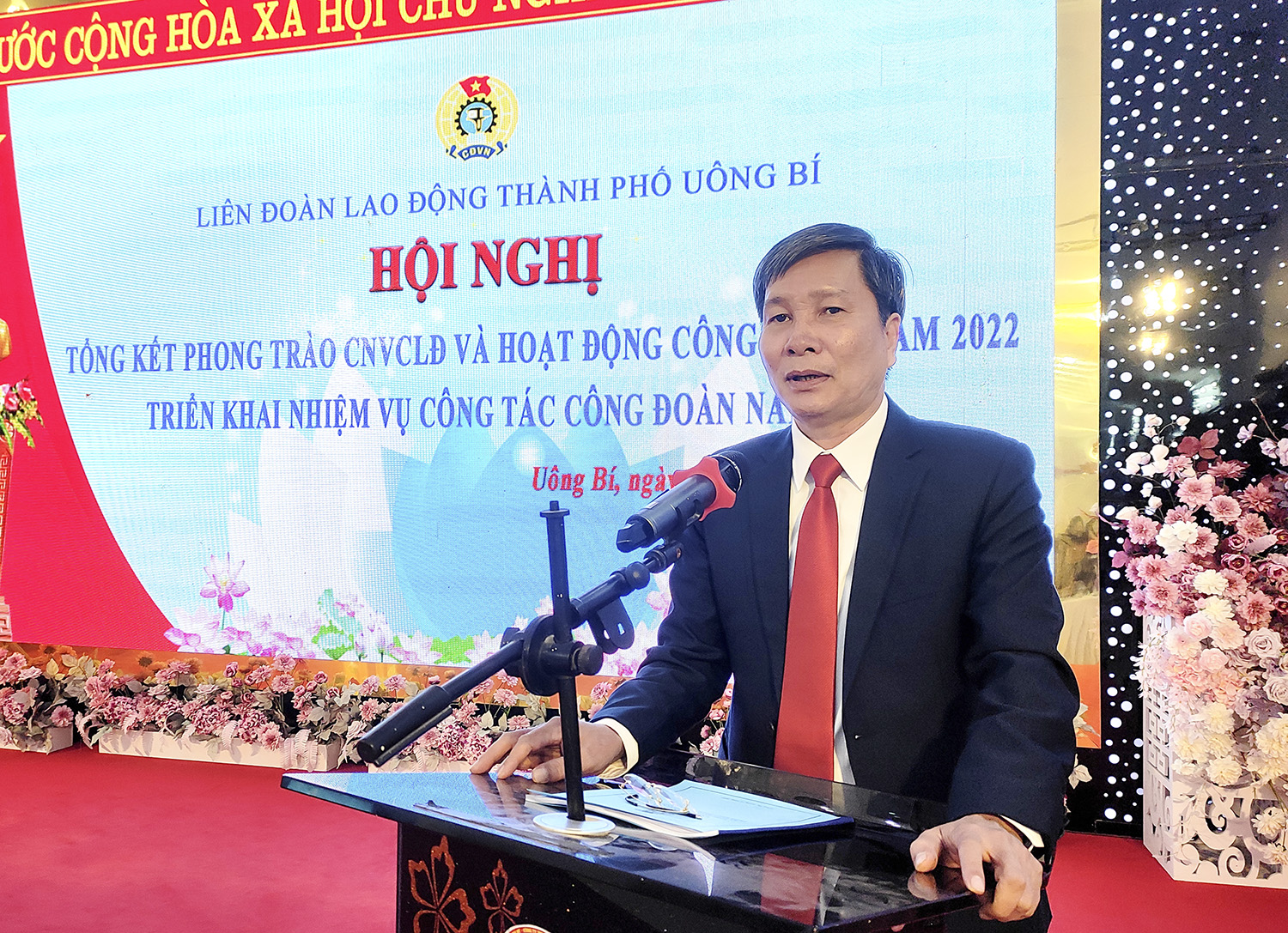 Phát biểu tại hội nghị, đồng chí Nguyễn Văn Thành, UVBTV Thành uỷ, Phó Chủ tịch Thường trực UBND thành phố nhấn mạnh những kết quả nổi bật trong phong trào CNVCLĐ và hoạt động công đoàn thành phố đã đóng góp tích cực vào thành tích chung của thành phố Uông Bí trong năm 2022. Thông tin nhanh tại hội nghị những dấu ấn nổi bật trong phát triển kinh tế - xã hội của thành phố trong năm vừa qua, đồng chí Phó Chủ tịch Thường trực UBND thành phố mong muốn trong năm tới, các cấp công đoàn thành phố tiếp tục phát huy tinh thần đoàn kết, trí tuệ, hăng say lao động cống hiến, chung tay xây dựng thành phố Uông Bí ngày một giàu đẹp văn minh.