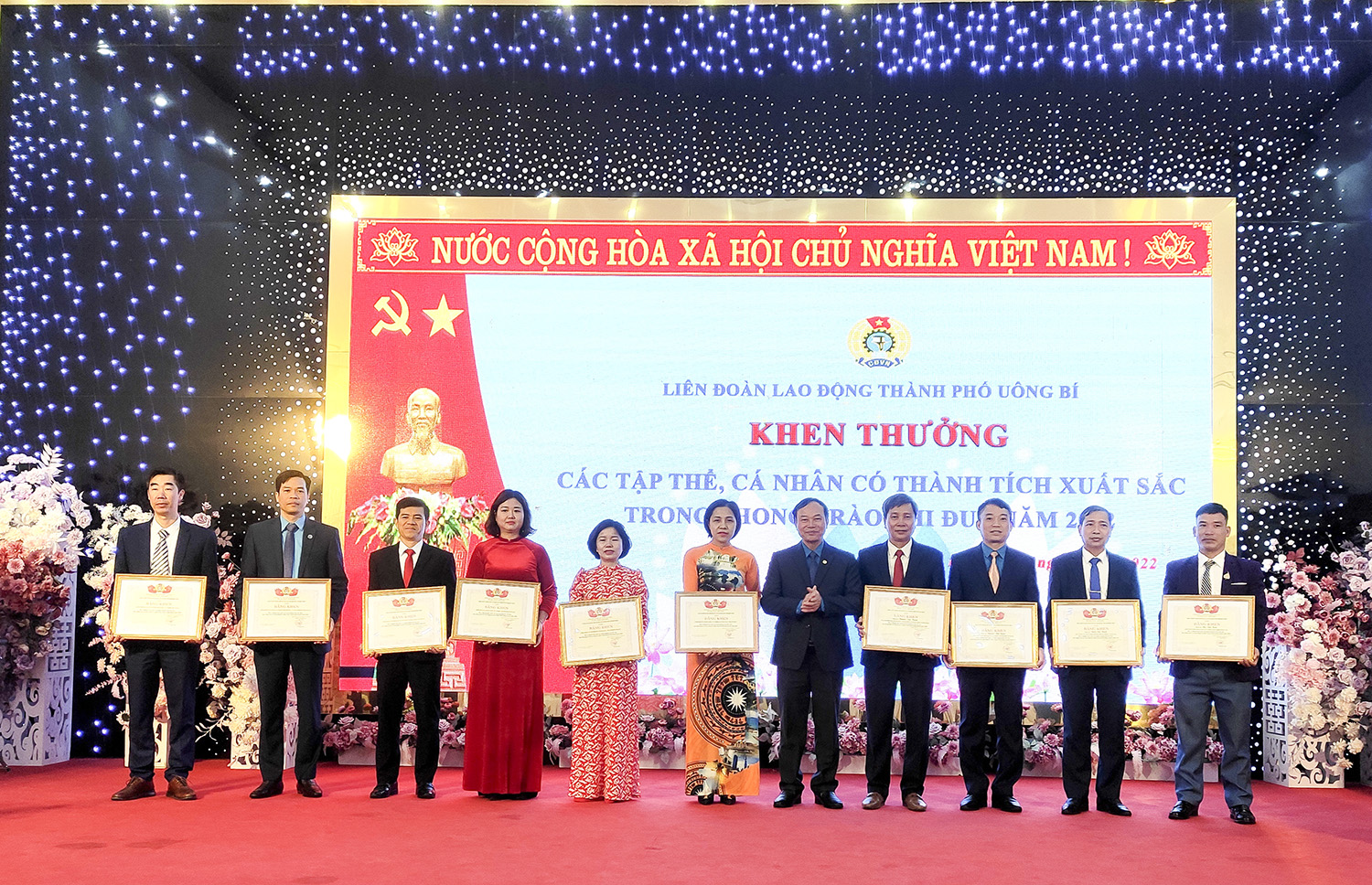 Ghi nhận những thành tích, nỗ lực của các cấp công đoàn, CNVCLĐ thành phố trong năm vừa qua, Tổng LĐLĐ Việt Nam, LĐLĐ tỉnh đã tặng nhiều bằng khen, giấy khen cho các tập thể và cá nhân. Nhân dịp này, LĐLĐ thành phố đã khen thưởng nhiều tập thể và cá nhân đã có thành tích xuất sắc trong phong trào CNVCLĐ và hoạt động công đoàn năm 2022.