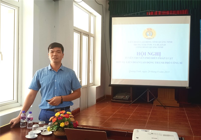 Phó Giám đốc Trung tâm Tư vấn và Huấn luyện ATLĐ công đoàn Quảng Ninh trực tiếp truyền đạt các nội dung tại hội nghị.