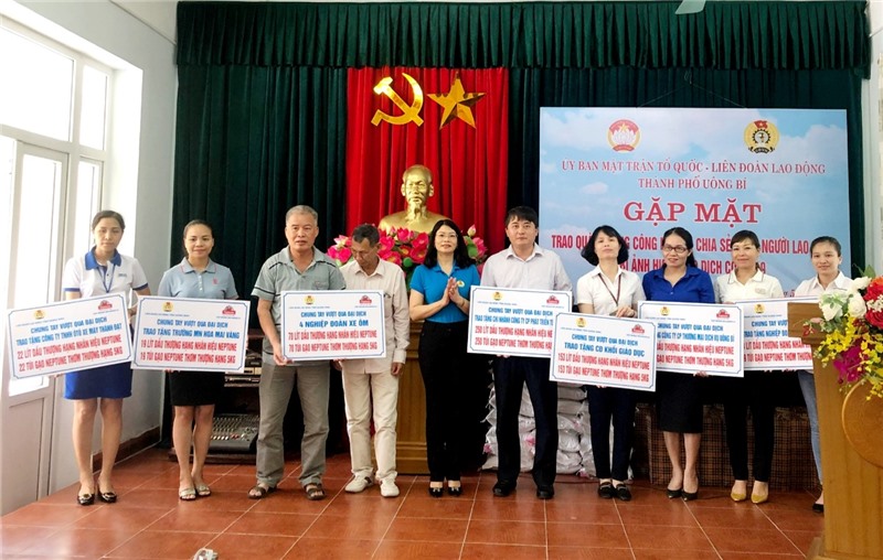 LĐLĐ tỉnh trao hỗ trợ cho NLĐ trên địa bàn TP Uông Bí bị ảnh hưởng bởi đại dịch Covid-19.