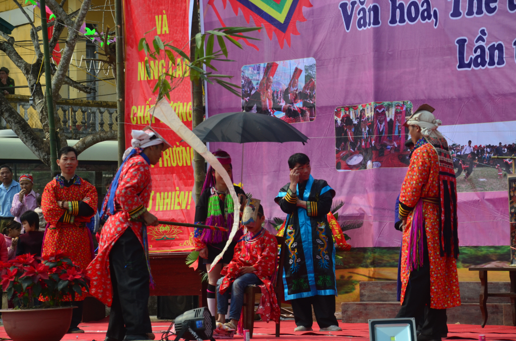 Tái hiện lễ cấp sắc của người Dao Thanh Y huyện Tiên Yên trên sân khấu.