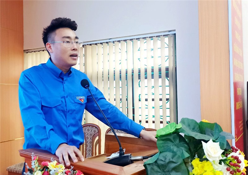 Đồng chí Trần Văn Giàu, Phó Bí thư Thành đoàn Uông Bí, Chủ tịch Hội LHTN thành phố phát biểu tại buổi lễ.