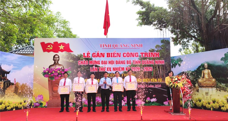 Lễ gắn biển Chào mừng Đại hội Đảng bộ tỉnh cho Công trình Đường vào Khu Di tích Quốc gia đặc biệt Yên Tử