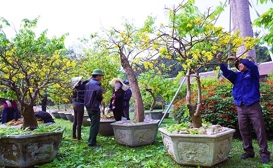 Cây hoa mai vàng được chăm sóc cẩn thận trước thời gian diễn ra lễ hội.